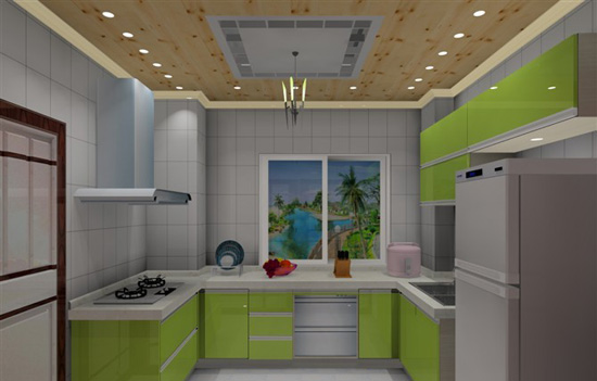 设计点评:白色的墙壁本显得比较单调,那么必然需要亮丽的色彩来点缀,绿色就是充满青春活力的色调,让你的厨房空间像大自然一样,让你置身在自然中烹饪美食。