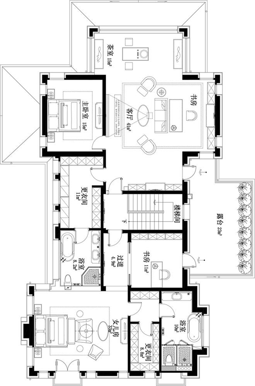 居住、工作、休闲、娱乐、爱好……不同维度的需求融合进房子的设计中,通过专业手法加以利用,能够带给居住者更加自在舒适的体验。“比如这个家的男主人会喜欢与朋友聚会,设置几个舒适的露台以及增加池塘,都能够从功能以及感官上满足这项需求。”设计师如果具备这样换位思考的能力,便能够为业主带来许多居住上的惊喜。