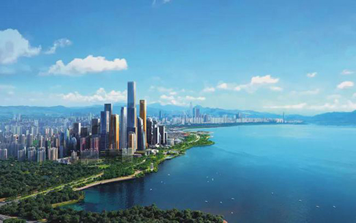 > 深圳湾超级总部基地效果图,建筑设计:孟建民设计团队