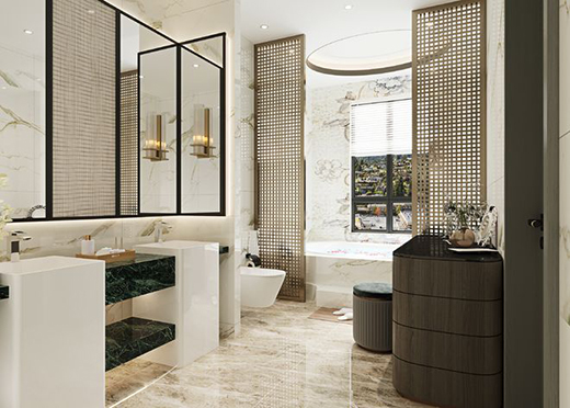 此处洗衣房与卫生间的亮点在于实用性与美观的相结合,给人充满熟悉的高级感,整体布局十分巧妙。