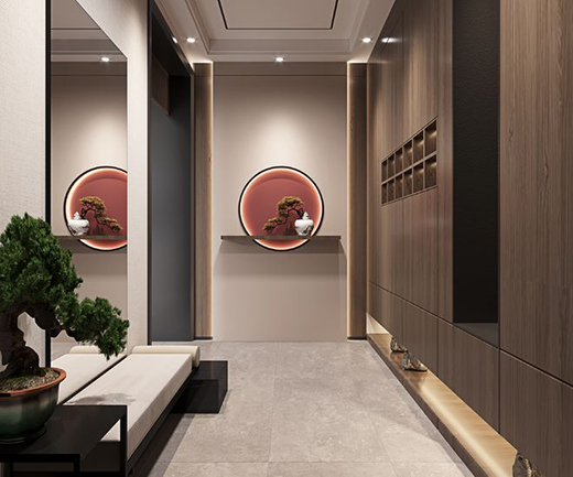 玄关采用的是自然大气的设计布局,给人一种井然有序的美感。
