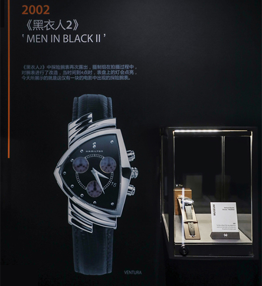 汉米尔顿探险系列腕表多次在《黑衣人》系列电影中出镜,与黑衣制服、墨镜和记忆消除棒一样,是黑衣探员必不可少的道具,该系列腕表设计大胆前卫、先锋时尚、领先时代,引人注目的外观与黑衣探员的形象相得益彰。