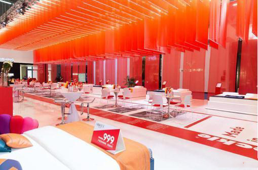 大面积采用德国红为主色调,带来强烈的视觉冲击感,同时也洋溢着热情与奔放,既活泼又严肃。在材质上我们追求简洁、低碳环保、不过渡包装。在区域上的划分,简洁明朗,搭配生活感十足的红色帷幔,在空间秩序上严谨又不失情趣。