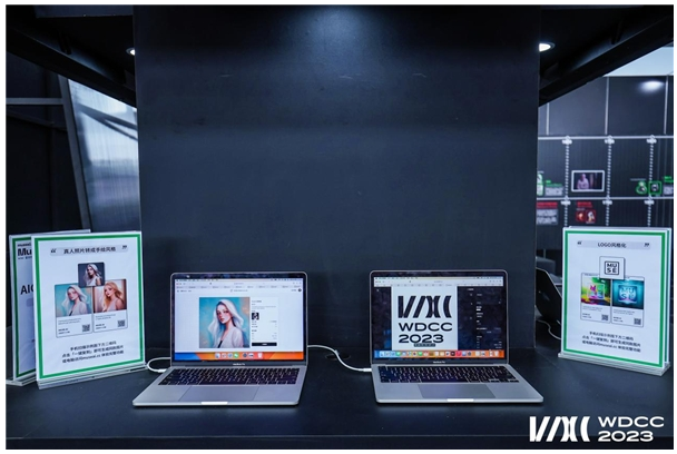 底部是所有观众可现场参与20个AIGC互动场景体验,包括趣味手绘、APP设计、UI设计、IP设计等等,观众可以通过使用特赞MuseAI、即时设计等AI产品,直观感受AIGC数字设计的魅力。