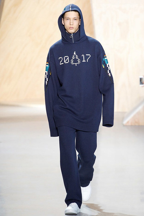 少年们会在海军蓝拉链连帽运动衫里搭配领口和袖子细节处有红白蓝设计的白色 衫,或搭配白色或海军蓝的带口袋T恤,以此来支持他们的偶像。