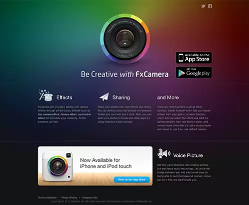 KODU.的网页设计除了渐变的背景图片以外,还使用了一些炫光效果,亮丽的枚红主色令网站变得格外清新乐观。背景上的水印底纹设计也让页面不那么单调,并且很好的体现了网站特色。