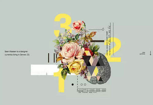几何图形的边缘和线条相对硬朗,硬朗的几何图形配合柔软的视觉元素,会有很好的视觉冲击感。Sean Klassen的网站,就是采用柔软的视觉元素与硬朗的几何元素构成,用鲜花的柔美和几何图形的硬朗形成视觉对比,构成主视觉的设计形式。