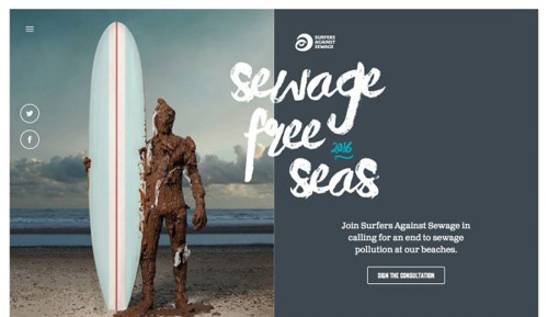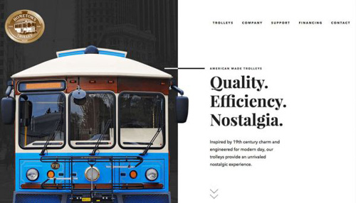 许多跨区域的排版设计都非常明显,但是也有比较微妙的,比如上面的网页 Hometown Trolley 。右侧文本部分伸出一条线,将用户视觉引导到左侧的图像当中,如果你仔细观察,还会发现左边汽车的后视镜从背景中突出并延伸到右侧的文本区块当中来。
