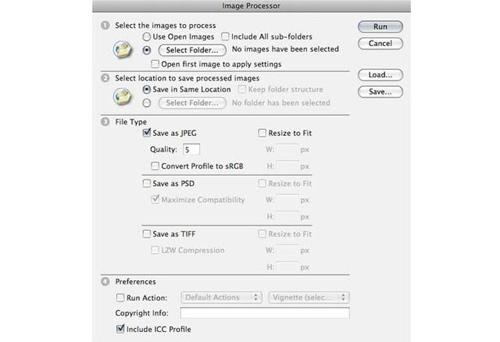 使用图像处理器就像使用批量操作面板一样,使用图像处理器来打开文件夹的所有图像,调整大小之后并将其保存到相应位置。这一操作仅需点击几下鼠标就可以完成,利于节约大量时间。