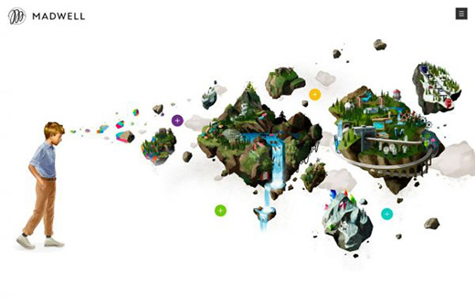 越来越成熟的3D设计让卡通和接近现实的设计元素的设计成本变得低廉,像上面 Madwell 这个网页,这些风格接近卡通,但是视觉效果和形式感都极为突出的元素,在视差动效下产生了类似VR的视觉体验。