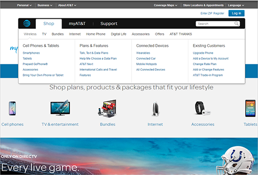 ATT.com:有关旧手机交易的信息是在现有客户下,但用户在智能手机下查找。