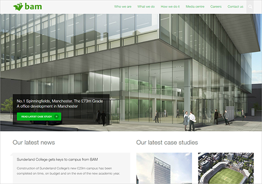 BAM建筑网站上的用户希望了解建设项目的细节,但不确定这些信息是否属于关于我们,公司业务,或者公司技术,大部分是从我们的产品开始,但该部分包含了组织为客户提供的工作类型的概述,而不是项目细节,项目信息和案例研究是我们的技术特色。